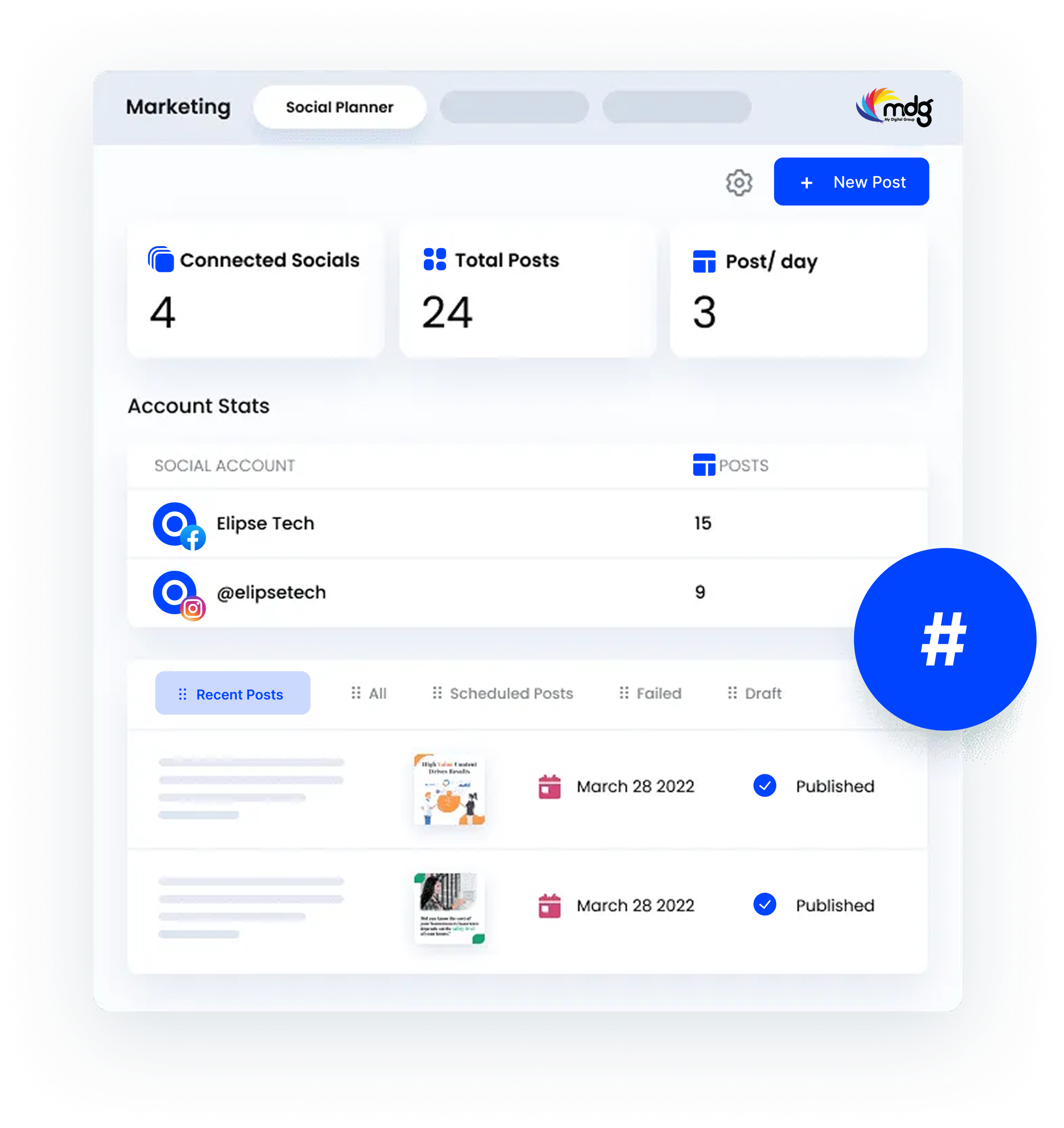 Schedule posts for all your social networks to save you tons of time.